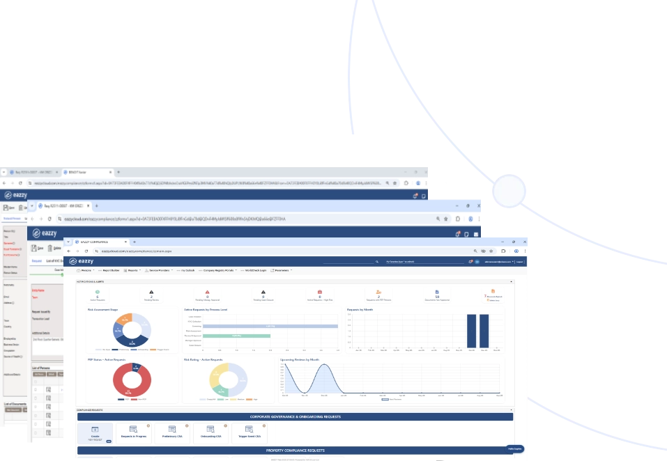 Eazzy Compliance is a modern, automated compliance and KYC management platform built to streamline regulatory processes, accelerate onboarding, and centralize all due-diligence activity.
